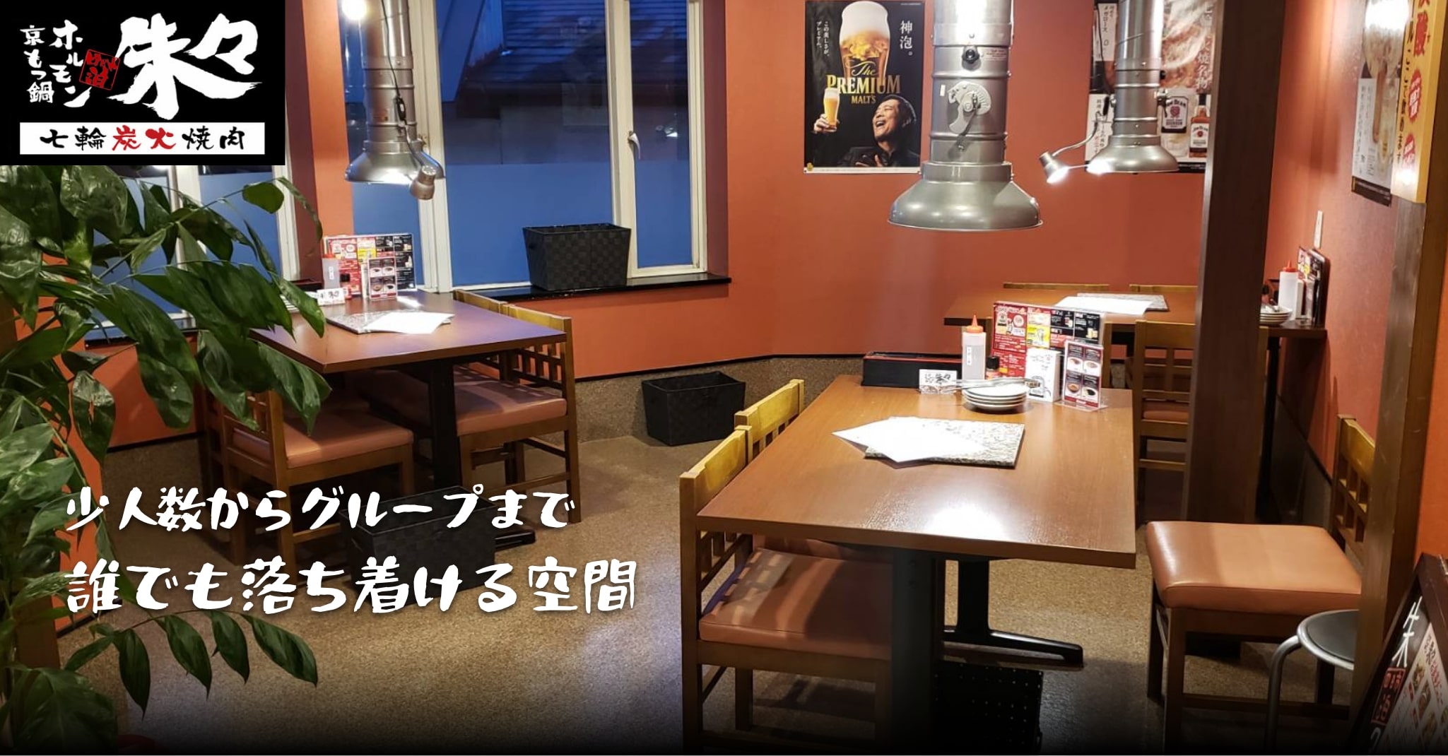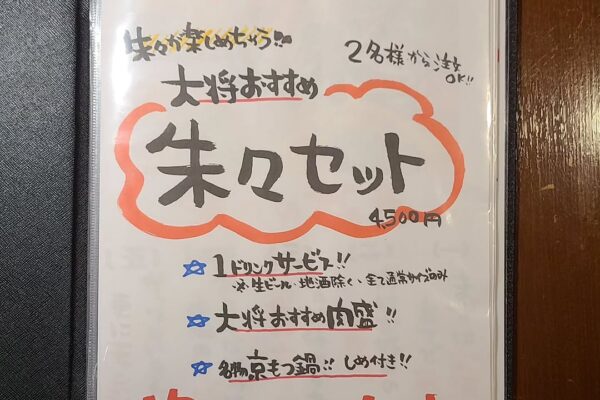 三重県四日市にある「京もつ鍋ホルモン 朱々四日市泊店」。当店では炭火の香りが立ちのぼる焼肉と京だしの旨み広がるもつ鍋を同時に堪能でき、一品料理も充実しています。温もりのある店内で、家族でも宴会でも心満たされる時間をお過ごしください。