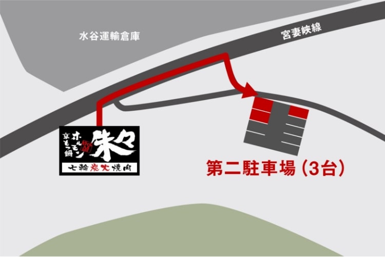 お店の前に4台、第二駐車場に3台分の駐車スペースをご用意しております。お車でお越しの際は、できるだけ乗り合わせてのご来店をお願いしております。駐車場が混雑する場合もありますので、予めご理解とご協力をお願いいたします。