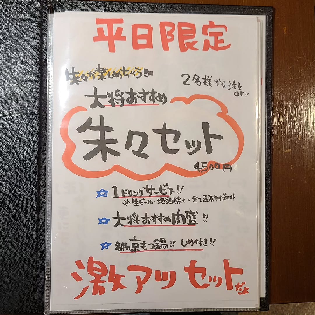 に投稿されました まんちんたろう Trustindex は、レビューの元のソースが Google であることを確認します。 大将こだわりの新鮮なお肉をいただきます。 衛生面にも気を配っておられるお店。 ハイボールは絶品!炭酸が突き抜けます! に投稿されました 冨山勝志 Trustindex は、レビューの元のソースが Google であることを確認します。 焼き肉、モツ鍋どちらも大変美味しゅうございました! また来ます☺️ に投稿されました まさ旦那 Trustindex は、レビューの元のソースが Google であることを確認します。 朱々さんのもつ鍋は本当に美味しいです!冬には最高ですね足りなければホルモン追加してまた鍋に投入!大満足でした😋 ⚠️店前に駐車場ありますが角度がおかしい上にかなり止めにくいです大きめの車だとちょっと苦労するかもしれません に投稿されました 6壱壱拾七弌6 伊ト1927, Trustindex は、レビューの元のソースが Google であることを確認します。 【モツ鍋】の看板がずっと気になってた!念願叶って伺う事ができました。 モツ鍋食べたら 翌日お肌プルプルでビックリしました!味も言うこと無し!ノーマルの モツ鍋(モツ追加)頼んだけど個人に取り分けてから味変出来る辛みやニンニクも付いてくるので辛いの苦手な方と得意な方が一緒に行っても大丈夫ですよ。 どて煮もキムチ盛り合わせも 何でも美味しかったです。 駐車場は店先と少し離れた所(東側)にも第二駐車場があります。 に投稿されました 01 connect (CN) Trustindex は、レビューの元のソースが Google であることを確認します。 七輪焼も、もつ鍋もめちゃくちゃ美味しくておすすめです! 旦那さんと奥さんの感じが良いので、来て良かったな!って家族でいつも食べた後に言ってます。 ご馳走様でした(^ν^) に投稿されました Q太郎 Trustindex は、レビューの元のソースが Google であることを確認します。 素晴らしい‼️
